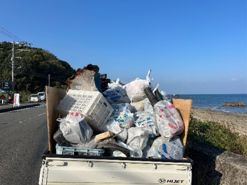 当日は、漁具やプラスチック製容器や発泡スチロール、空き缶、ペットボトルなど、海を漂流して流れ着いたものや投棄されたものなど、さまざまなごみを回収しました。これらの活動は、天草の海で暮らす野生イルカや、日々海と向き合う漁師の皆さんにとって、より安全で安心できる海の環境を守ることにつながることを目的に行っています。